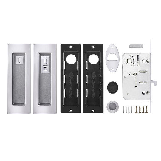 Набор для раздвижных дверей предназначен для установки на межкомнатные раздвижные двери и шкафы-купе. Идеально сочетается с фурнитурой Armadillo в аналогичных цветах. В комплект входит: ручки для раздвижных дверей, пластиковый вкладыш, торцевой захват, защелка для раздвижных дверей, ответная планка, крепежный комплект, шаблон для монтажа.