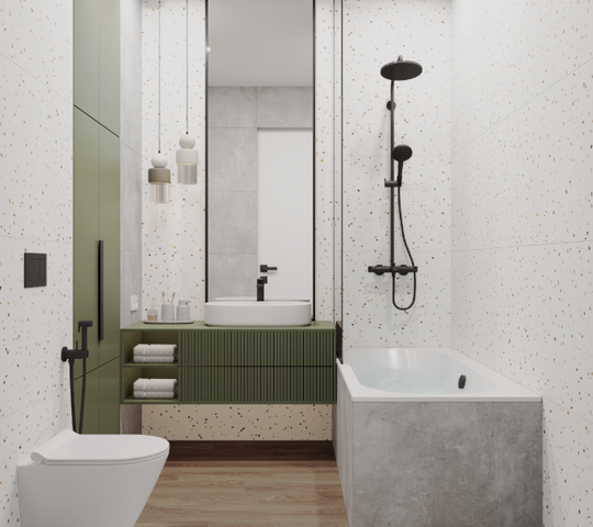 4) Раковина (комплект мебели для ванной комнаты или тумба с раковиной)