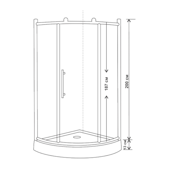 низкий поддон 13 см, алюминиевый усиленный профиль, раздвижная дверь, металлическая ручка хромированная