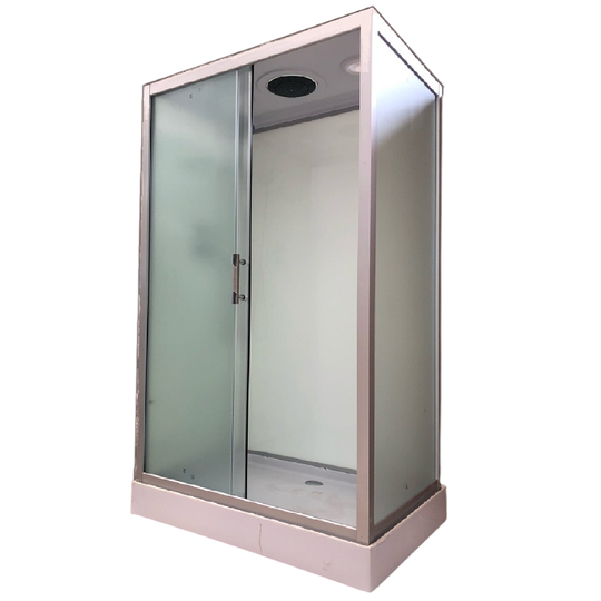 - Комплектация: поддон 15 см с бортиком, смеситель, ручная лейка на гибком шланге, тропический душ, полочка, ролики, ручки, магнит на двери, сифон;