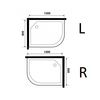 - Комплектация: поддон 15 см с бортиком, серебряный матовый профиль и дуги, верхний душ, ручной душ с держателем, стеклянная полка, стеклянная панель, смеситель.