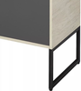 Тумба Лофт Урбан 65 функционально состоит из двух ящиков полного выдвижения. Верхний ящик тумбы комплектуется внутренней организацией пространства: в нем очень удобно хранить небольшие аксессуары и принадлежности. Вместительный нижний высокий ящик подойдет для более крупных предметов. Функция полного выдвижения ящиков и система открывания push-to-open делают использование тумбы особенно комфортным. Корпус тумбы выполнен из влагостойкой ламинированной ДСП в цвете "дуб орегон" с текстурой натурального дерева, выгодно подчеркнутым фасадами из МДФ в пленке антрацит с эффектом soft touch.