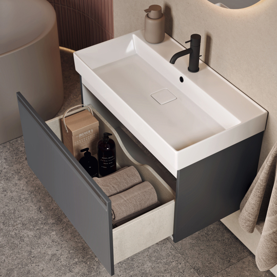Тумба Pure 81 оснащена одним ящиком с плавным скольжением и мягким закрыванием.