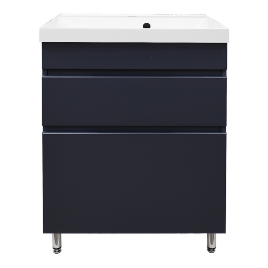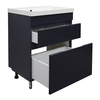 Тумба Эстима 60/2Н оснащена двумя выдвижными ящиками на доводчиках скрытого монтажа. Установлена на хромированные ножки. Корпус изготовлен из ЛДСП, фасады МДФ толщиной 16 мм. Корпус и фасады производства Kronospan. Бока и фасады крашеные итальянской эмалью.