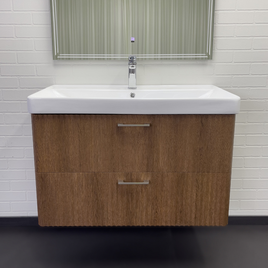 • Тумба Comforty Ангара 90П цвет "дуб темно-коричневый" с керамической раковиной Comforty 4490.