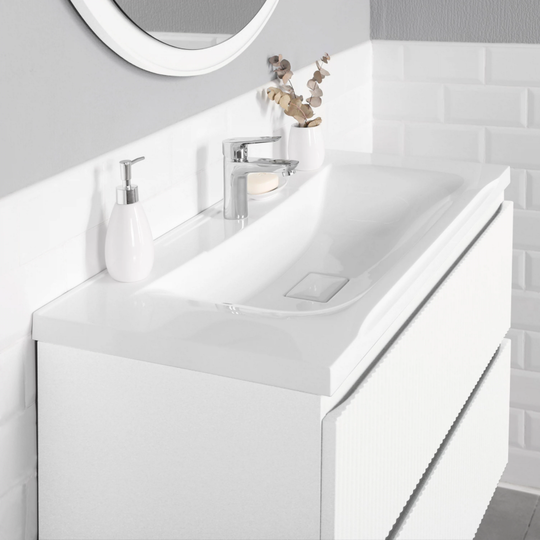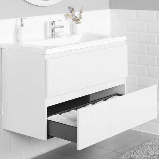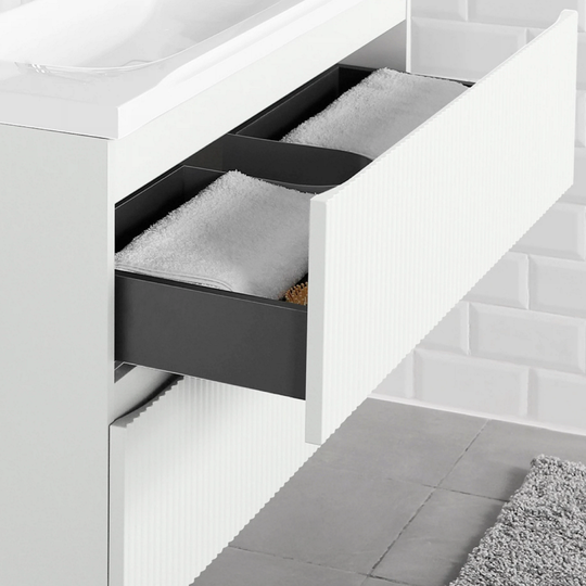 Тумба Итана Kate 100 с фактурными фасадами оснащена двумя удобными ящиками для хранения и качественной фурнитурой с доводчиками. Изготовлена из МДФ и покрыта ПВХ пленкой.
