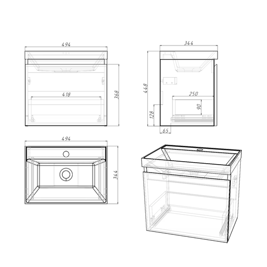- Тумба Итана Kate 50 цвет "антрацит" с раковиной из искусственного мрамора Итана Clarissa 50.