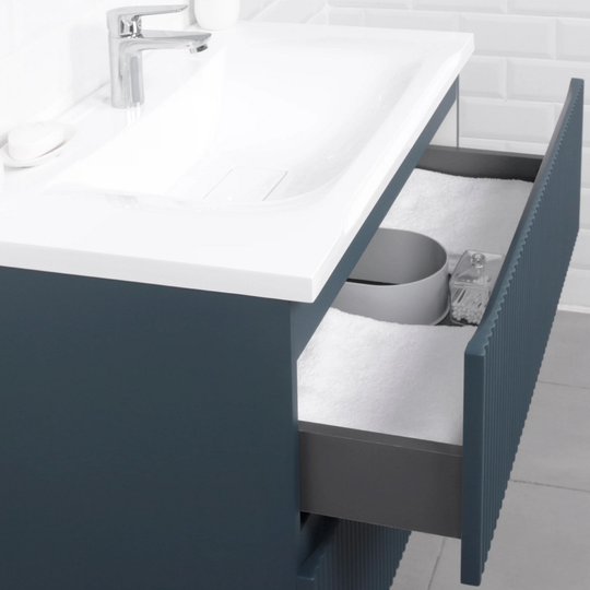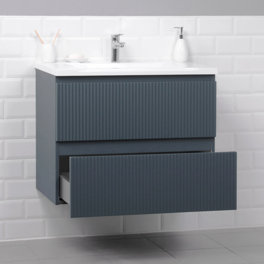 Тумба Итана Kate 80 с фактурными фасадами оснащена двумя удобными ящиками для хранения и качественной фурнитурой с доводчиками. Изготовлена из МДФ и покрыта ПВХ пленкой.