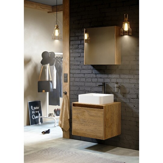 Зеркальный шкаф Mobi 60 оснащен одной дверцей на петлях с доводчиком, за которой спрятаны две стеклянные полочки. Внутри отсутствуют перегородки - это позволяет максимально использовать внутреннее пространство. Все предметы коллекции оснащены итальянскими навесами Camar, которые выдерживают нагрузку до 200 кг.