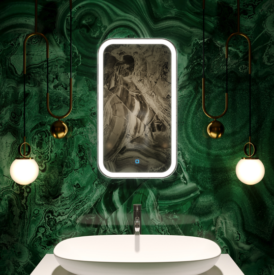 Особый характер этого зеркала с вертикальным расположением – в комбинации прямоугольной формы, мягкой геометрии и дизайна LED-подсветки. Световая рама расположена не по краям периметра, а несколько отступает от него. Графичность рисунка и всей формы смягчают скруглённые углы. Благодаря этой находке довольно минималистичный дизайн не мешает этому зеркалу быть яркой акцентной деталью любого пространства: от строгой, упорядоченной классики и сдержанного минимализма до свободолюбивых эклектичных интерьеров.