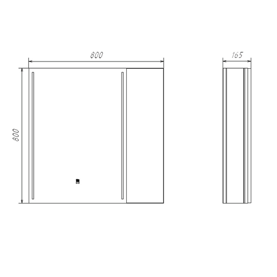 Зеркальное высококачественное полотно с амальгамой на основе серебра. Створка оснащена петлями с системой плавного закрывания. За створкой две полки. Открытие створки производится при помощи вертикальной профильной ручки, интегрированной в левую боковую стенку шкафчика. Зеркало оборудовано фронтальной LED подсветкой с бесконтактным выключателем со встроенной функцией регулировки яркости. Температура подсветки 6000-6500K холодный свет. Зеркало-шкаф выпускается только с правым размещением мебельного элемента.